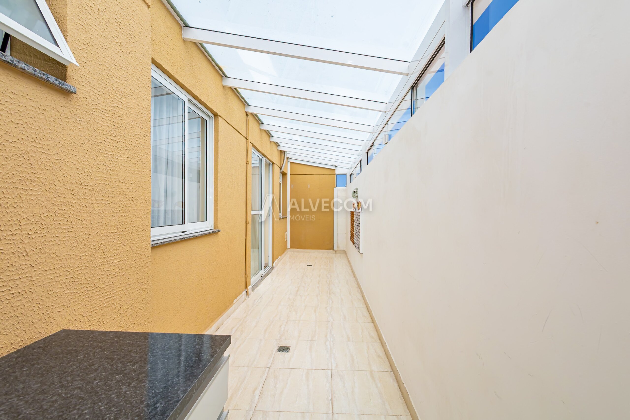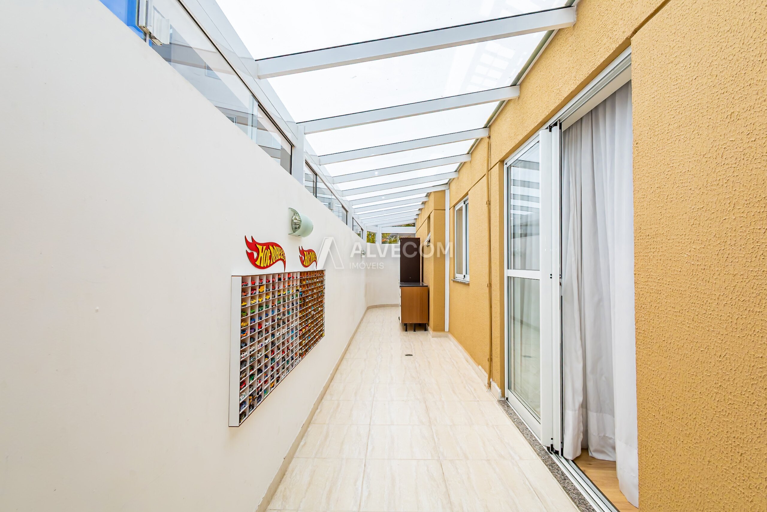 A estrutura coberta em alumínio branco e vidro temperado garante um ambiente iluminado, protegido da chuva e com a ventilação perfeita.