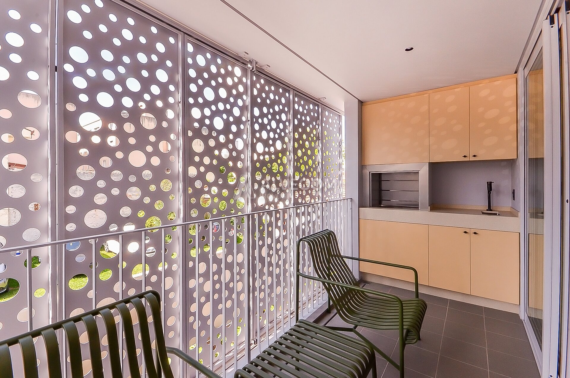 Acabamento impecável com vidros duplos, portas laqueadas e um projeto de fachada dinâmico com painéis móveis, garantindo privacidade e um design único.