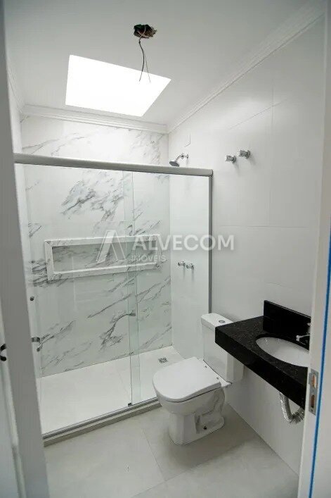 No pavimento inferior, a cozinha se integra à sala de estar e jantar, criando um ambiente amplo e convidativo, perfeito para receber quem você ama. Um lavabo complementa este espaço, oferecendo praticidade e elegância.